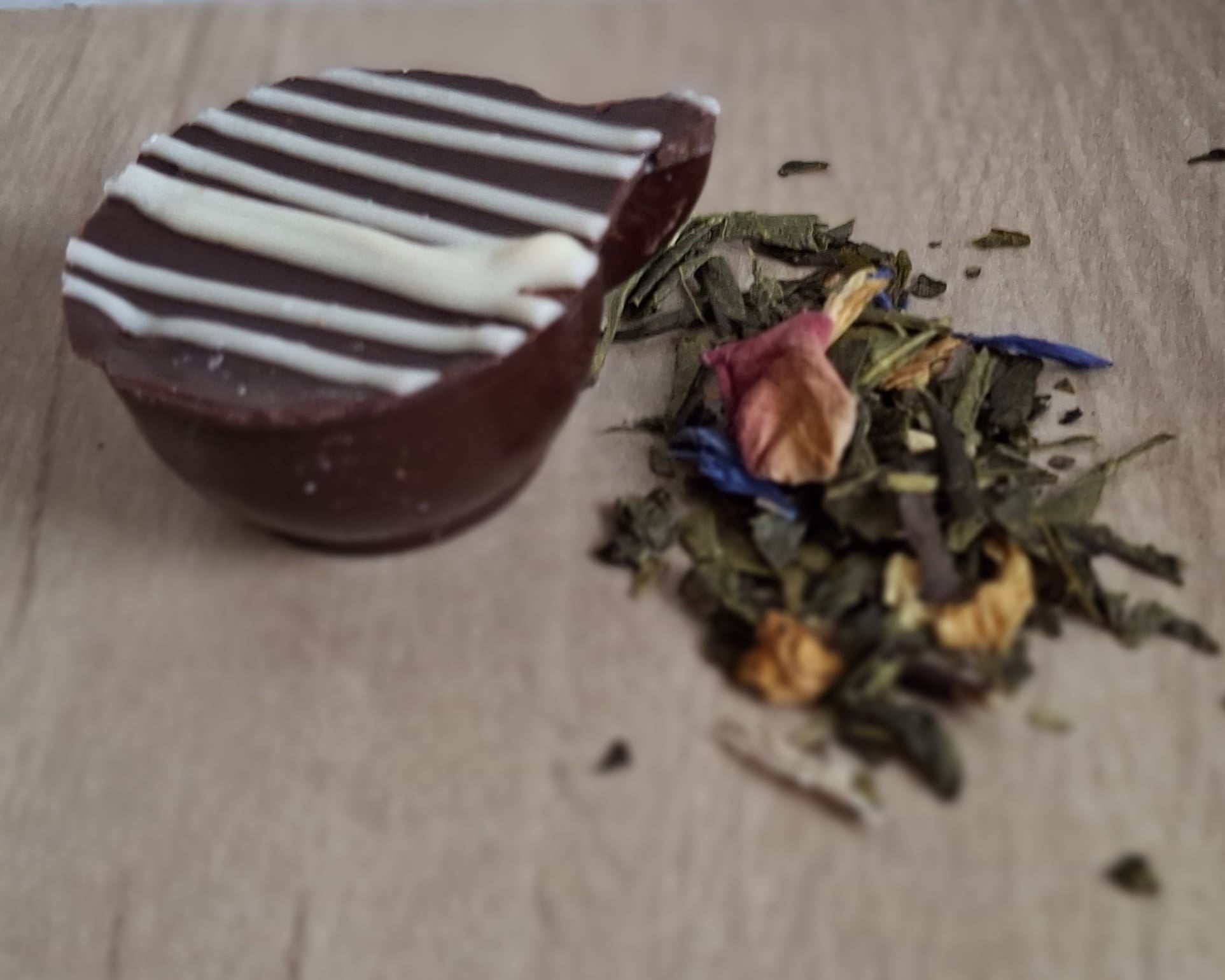 Für Teeliebhaber ein Muss! Aromatischer grüner Tee mit edler Zartbitterkuvertüre kombiniert.